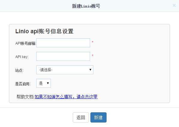 注意:新建賬號時,API賬號郵箱 , API key 對應(yīng)linio sellercenter - Manager Users里role 為"Seller API Access的賬號的Email Address和 API key,對應(yīng)的站點(diǎn)也一定要選擇。