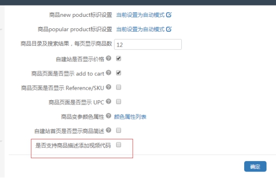 2,在“商品設(shè)置”頁(yè)面里勾選“是否支持商品描述添加視頻代碼”,以此開(kāi)啟詳情頁(yè)面添加視頻