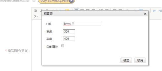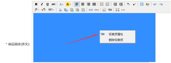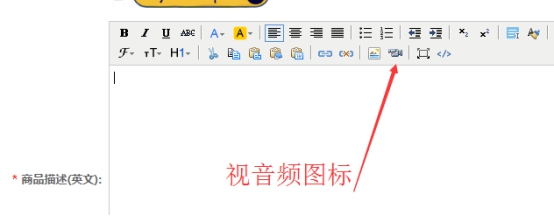 ①點(diǎn)擊“商品描述”里的“視音頻”圖標(biāo),