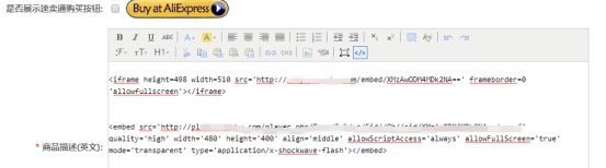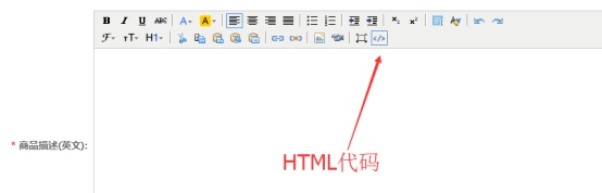 ②另一種方法是點(diǎn)擊“商品描述”里的“HTML代碼”圖標(biāo),