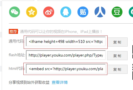 以“優(yōu)酷”為例,在這里可以輸入“通用代碼”或者“HTML代碼”